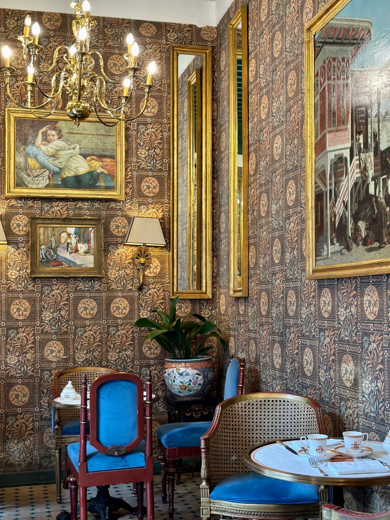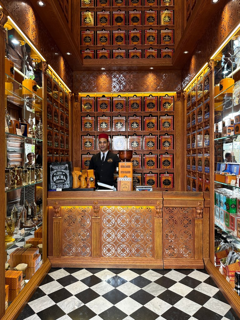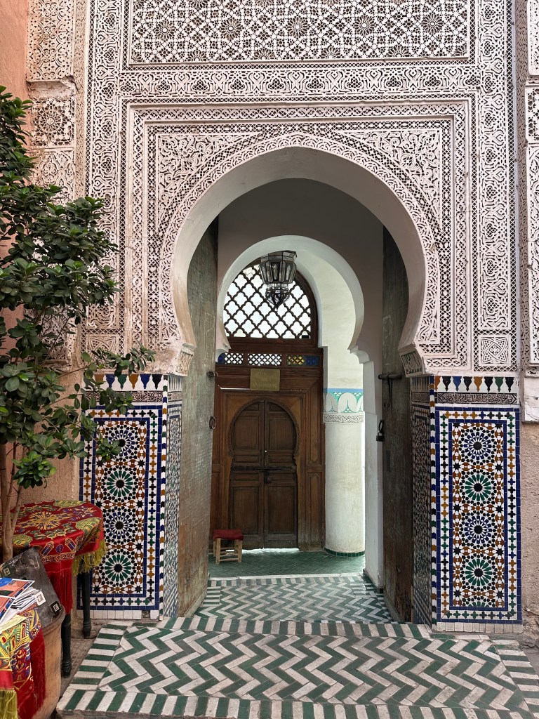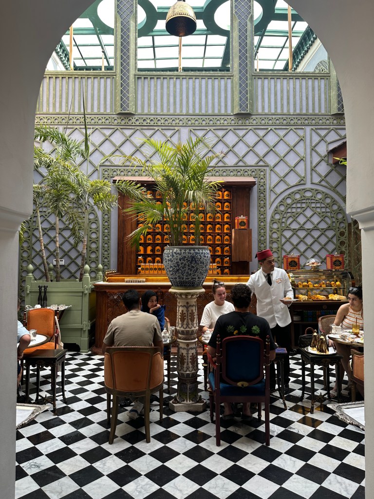 Ah, but you didn’t think I’d forget about the famous Moroccan mosaics, did you? We had the opportunity to explore this stunning style of architecture at Dar el Bacha, the estate of a former governor of Marrakesh. Following renovations in the 2000s, this impressive home now serves as a museum and hosts tourists the world over. Within the museum is an elegant cafe which boasts sale of a $100 cup of coffee!