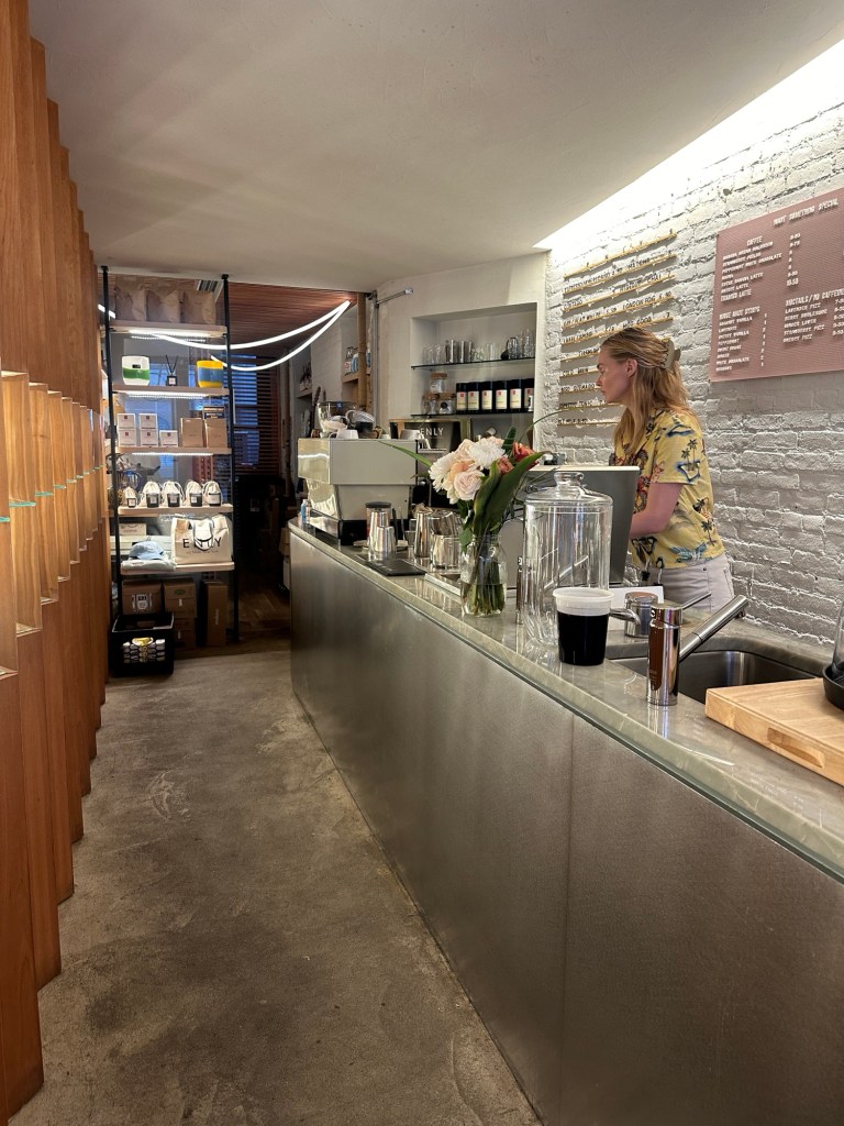 We continued onward to our second stop: Cafe Enley, home of the popular “tiramisu latte.” Like many of the trending local spots of NYC, the cafe was more visually appealing than authentically tasty. Still, the aesthetic was beautiful: simple, clean, and soft, the cafe reflected a “candle cafe” aptly, selling both coffee and candles in a limited but chic space.